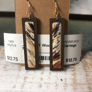 Cow Tag of Cowhide Small Earrings Black/Cream