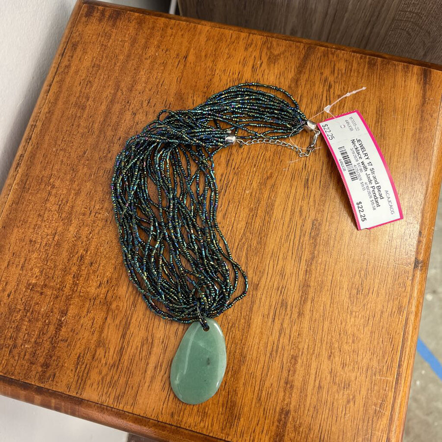 17 Strand Bead Necklace with Jade Pendant - $22.25