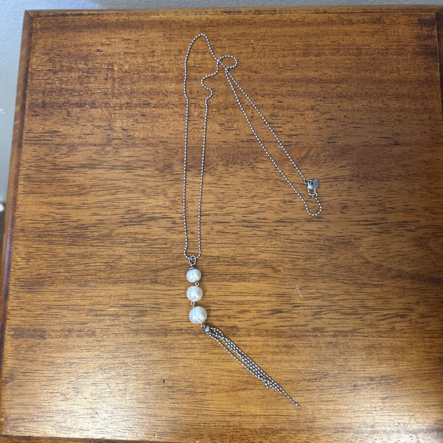 3 Tier Freshwater Pearl Pendant on Silver Necklace - $22.25