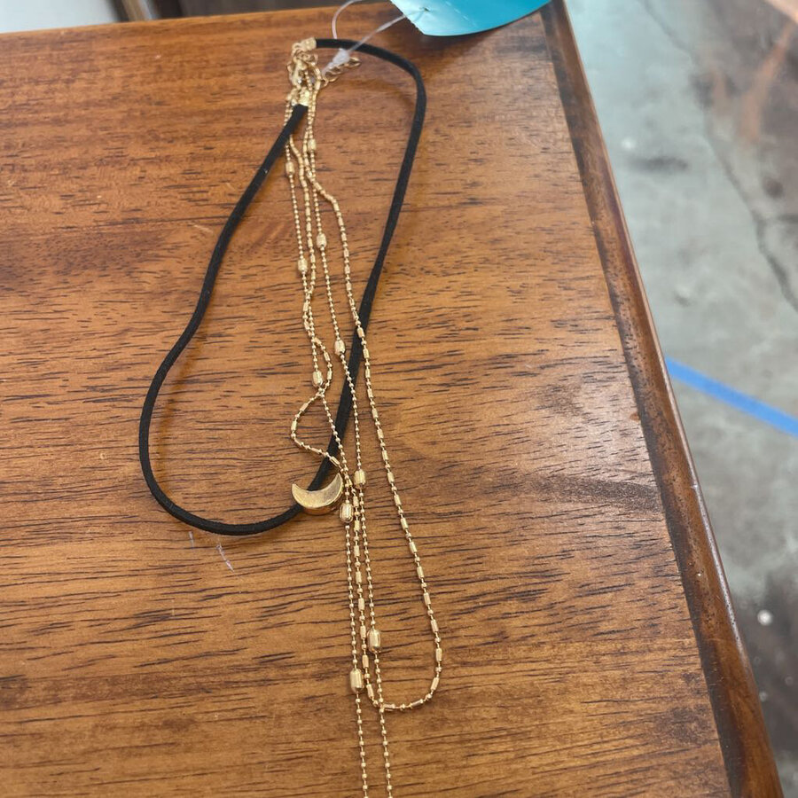 3 Tier with Leather Strap Necklace - $15.25