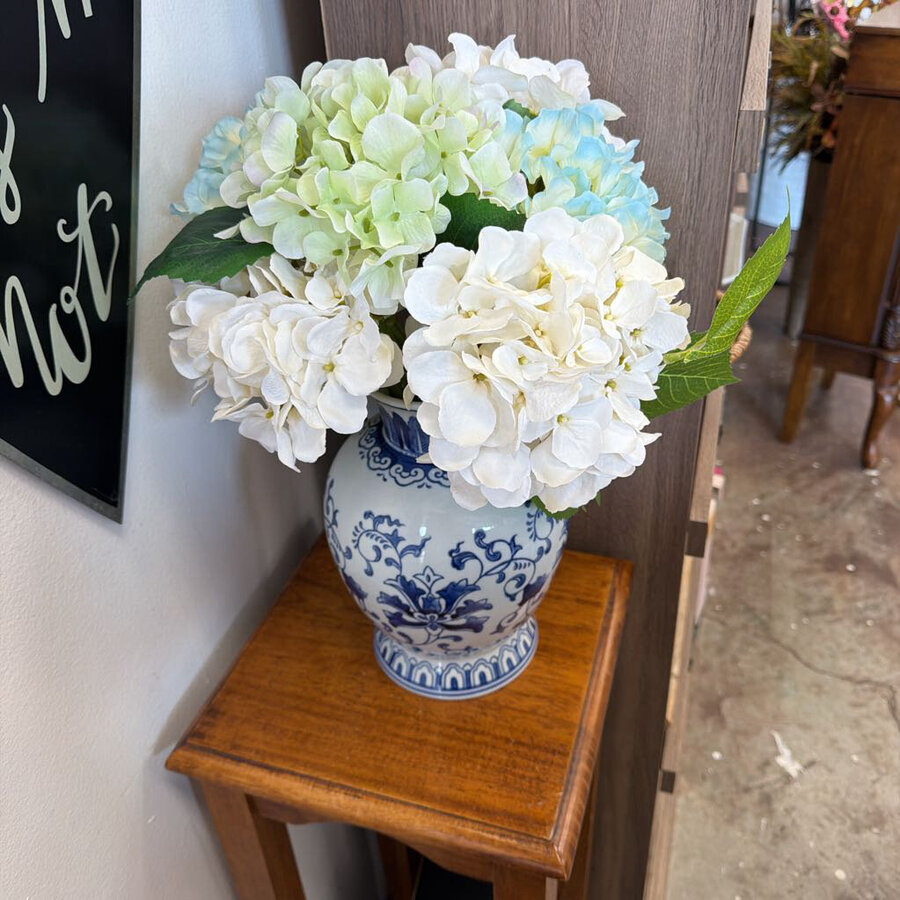 allen + roth 7.5-in Blue, white, green Indoor Desktop Hydrangea Artificial flower - $32.25