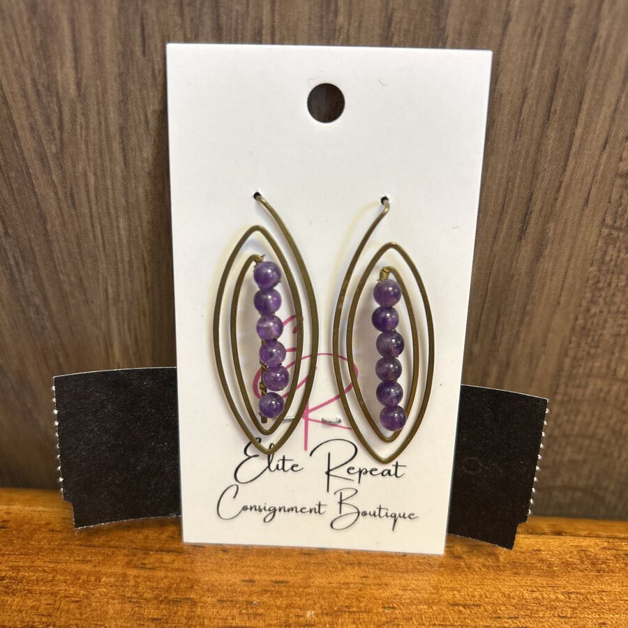 Amythyst Bead on Gold Tone Earrings - $14.25