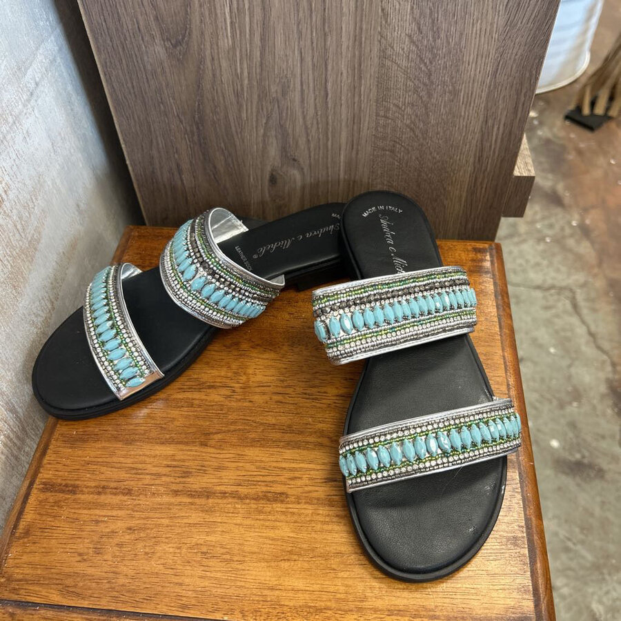 Andrea e Michele 8M Black with Turquoise Sandals - $28.75