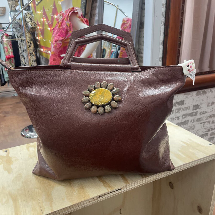 Anna Paola Brown Leather Satchel with Stones - $95.25