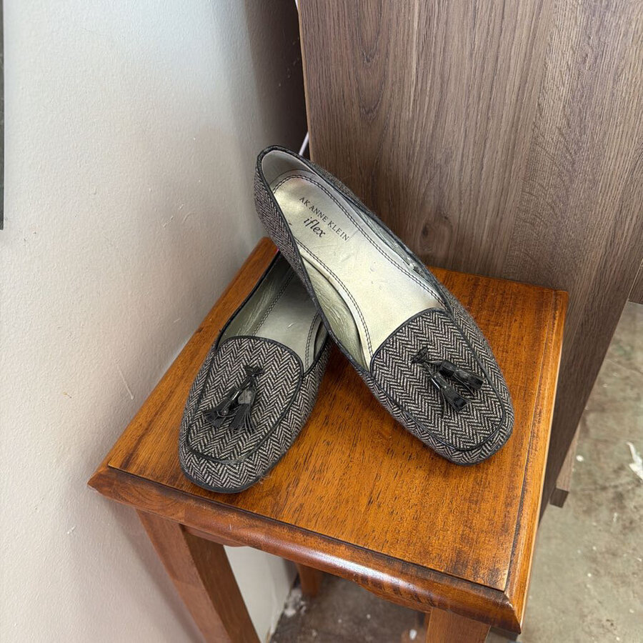 Anne Klein 9M Black/Gray Wool with Tassel Loafer - $20.25