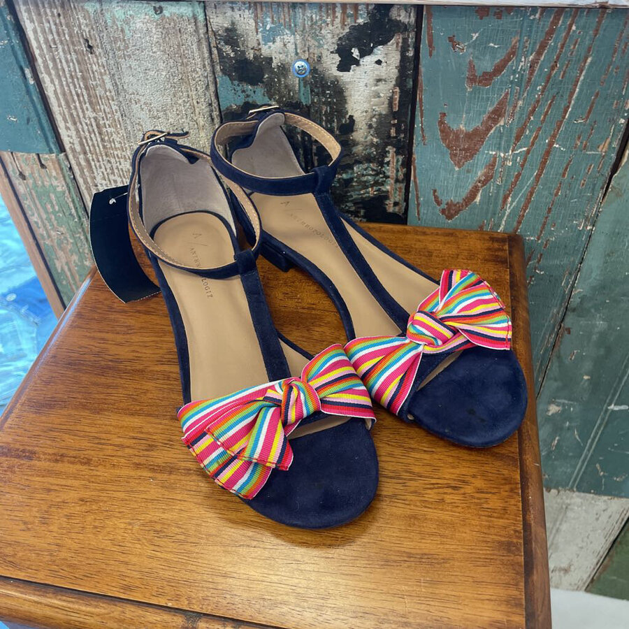 Anthropologie 7M Navy Blue Suede with Multi Color Bow - $32.25