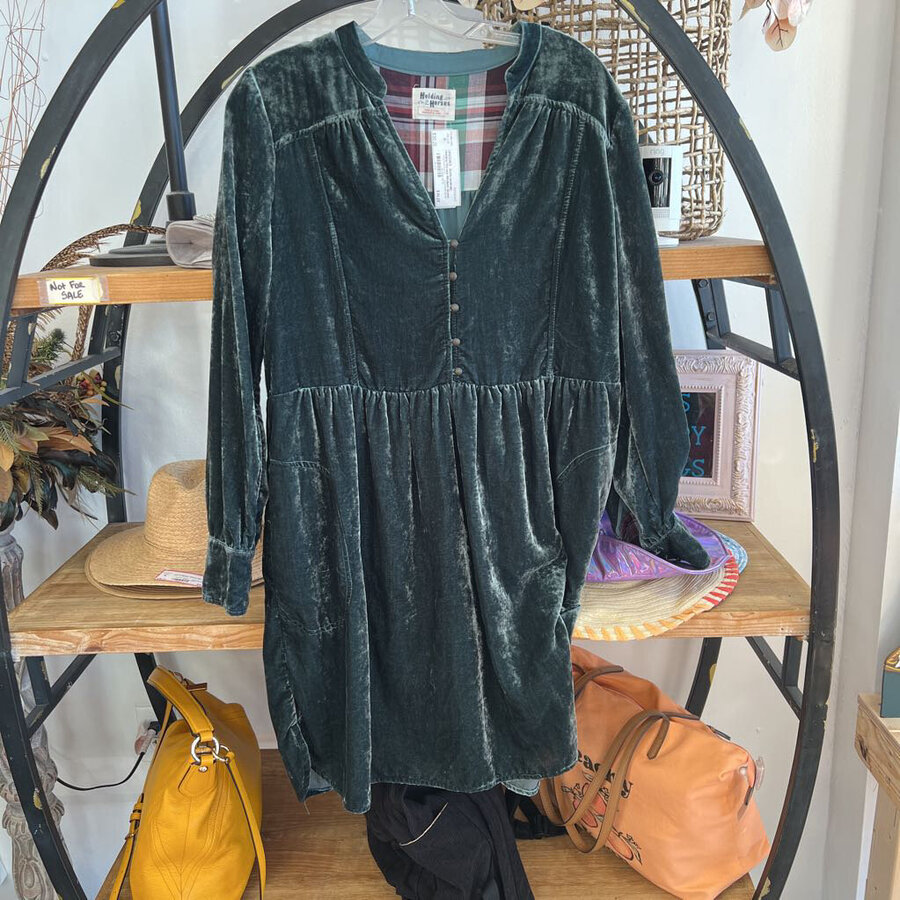 Anthropologie Holding Horses Medium Green Velvet Dress - $30.25