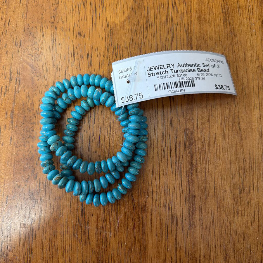 Authentic Set of 3 Stretch Turquoise Bead Bracelet - $38.75