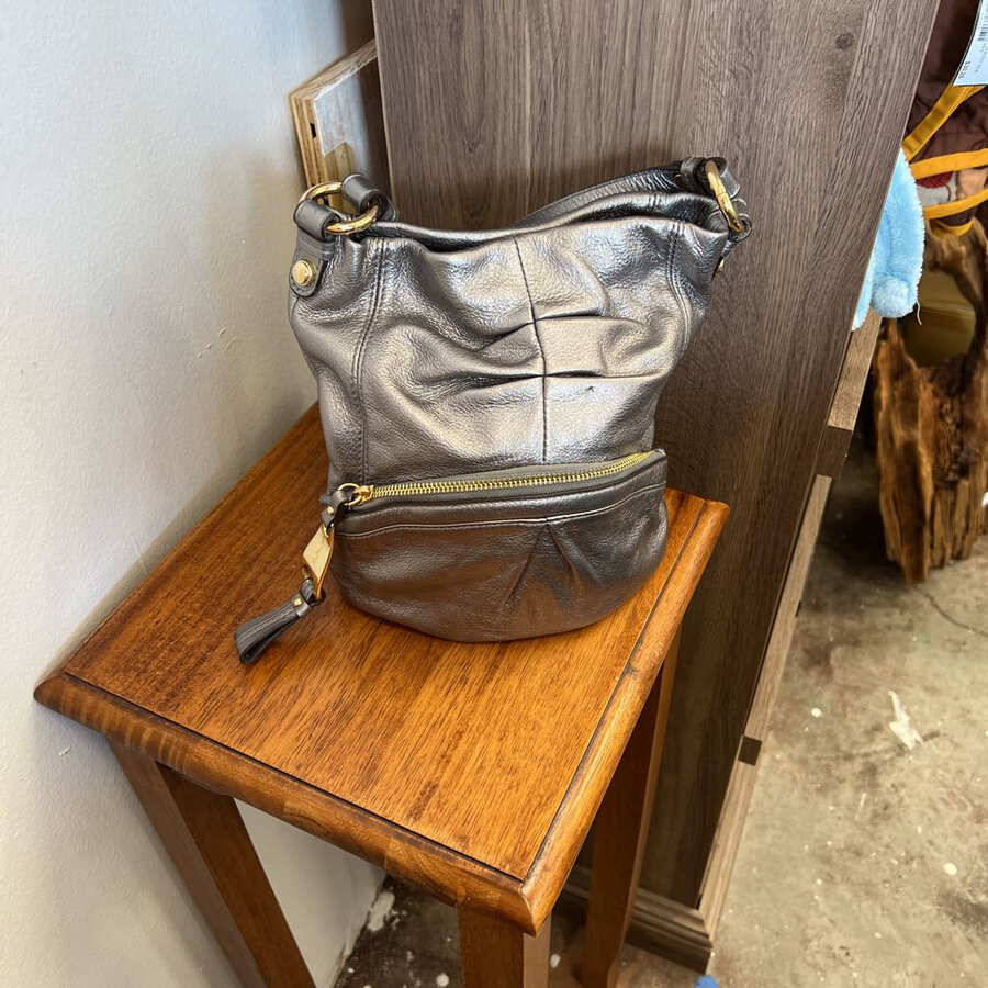 B Makowsky Silver Metallic Leather Handbag - $32.25