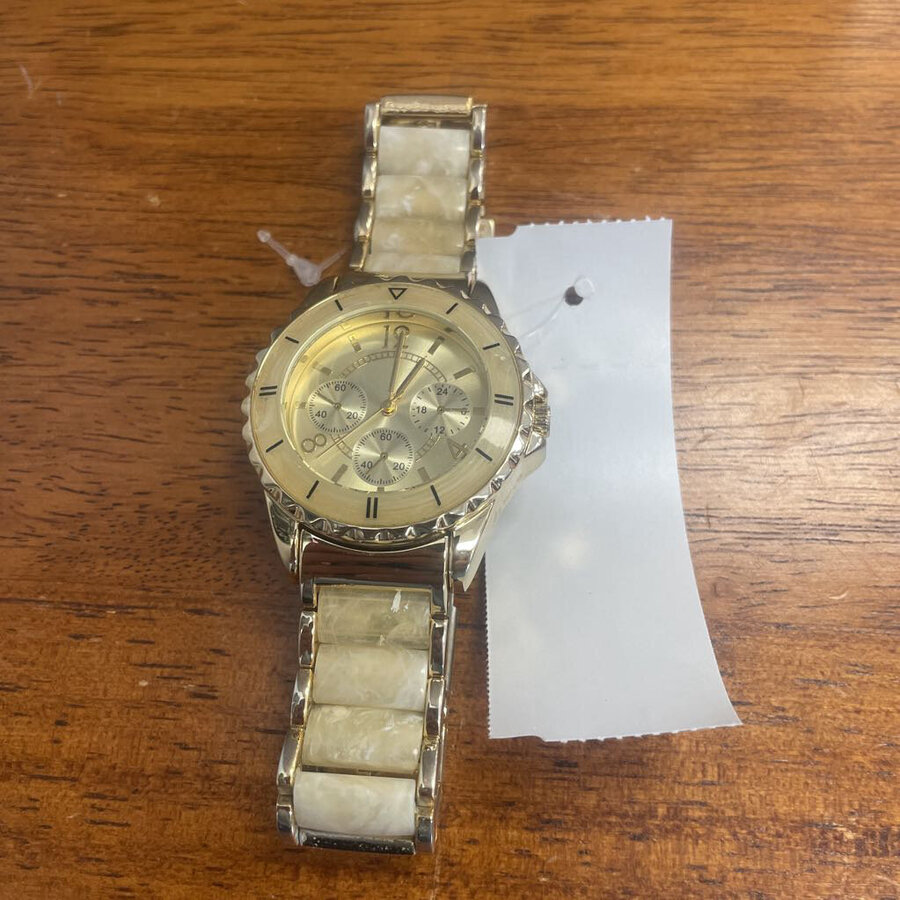Beige Marble Watch on Gold Needs Battery - $18.25