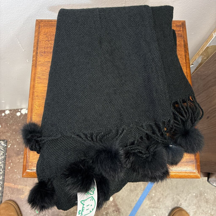 Black Pom Pom Scarf - $12.25