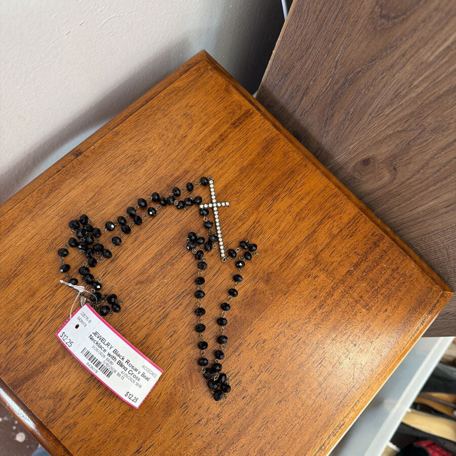 Black Rosary Bead Necklace with Bling Cross - $12.25