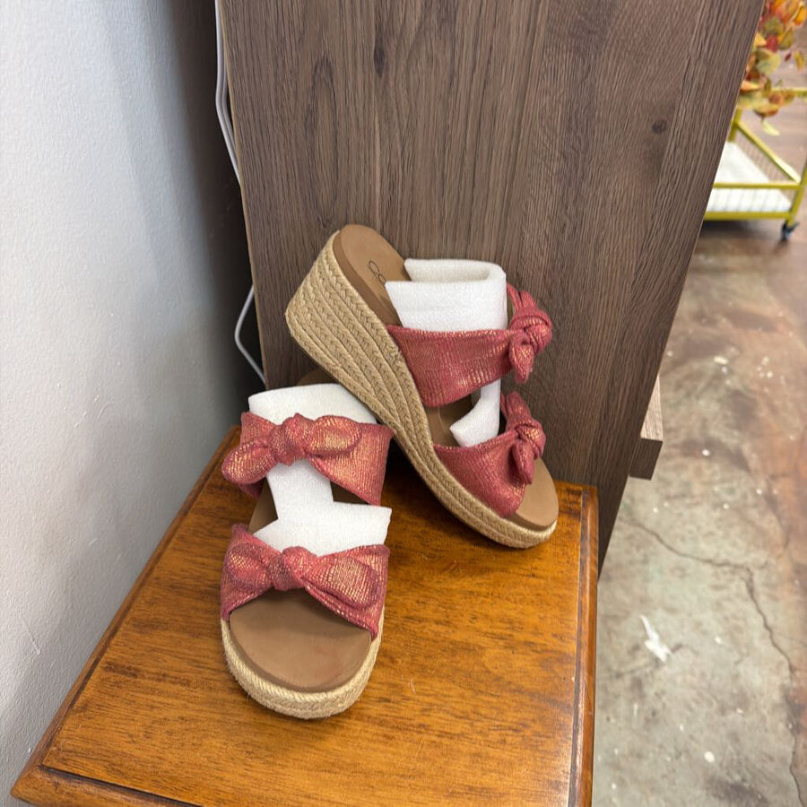 Boutique by Corkys NEW 7M Red/Gold Canvas Wedge - $30.25