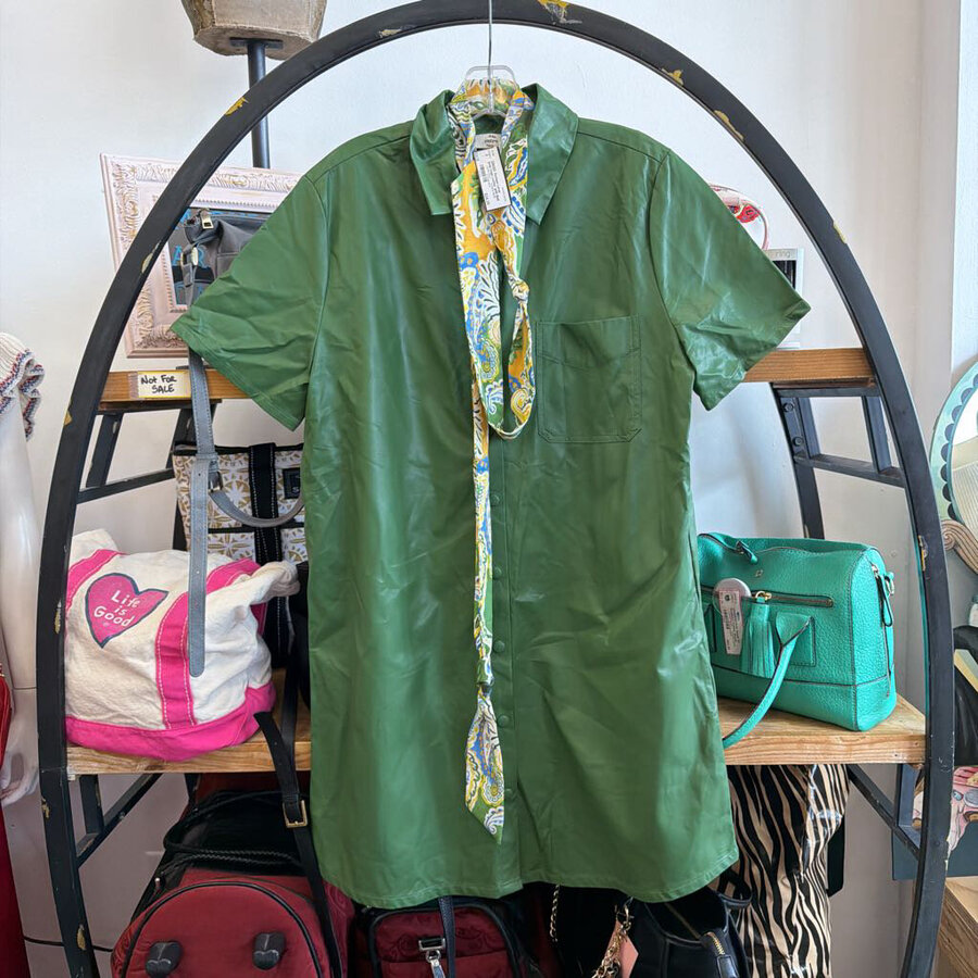 Boutique Large Green Vegan Leather with Belt - $24.25