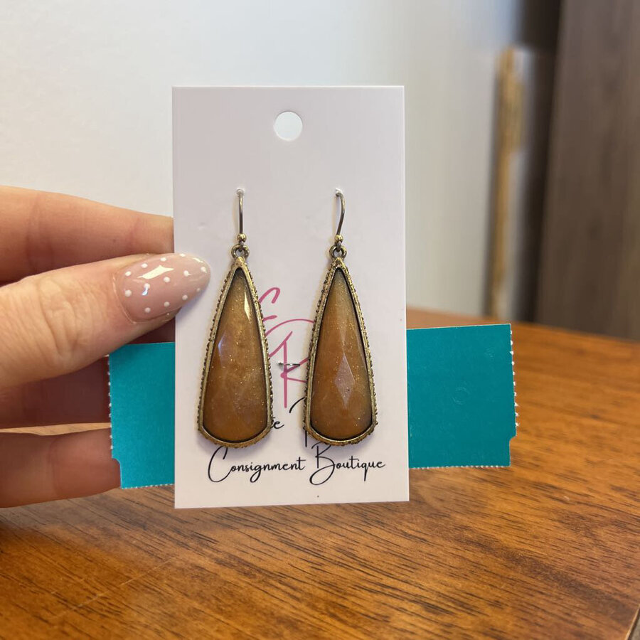 Brown Dangle with Rhinestone Edge Earrings - $15.25