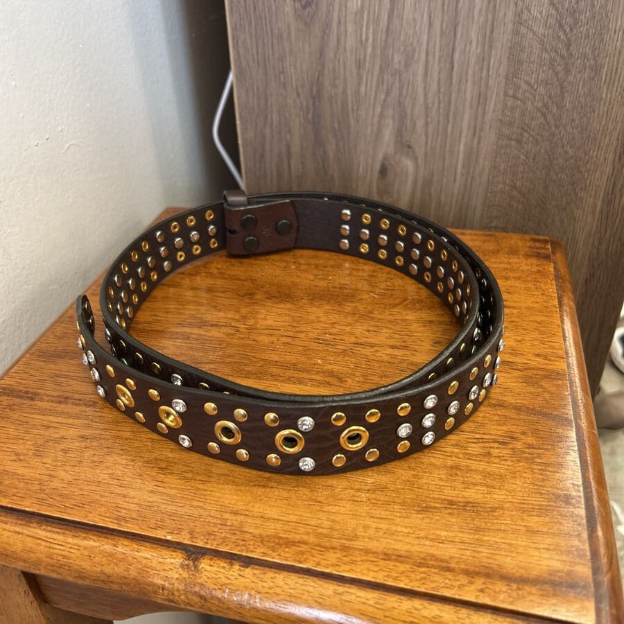 Brown Leather with Gold Bling Studs NO BUCKLE - $32.25