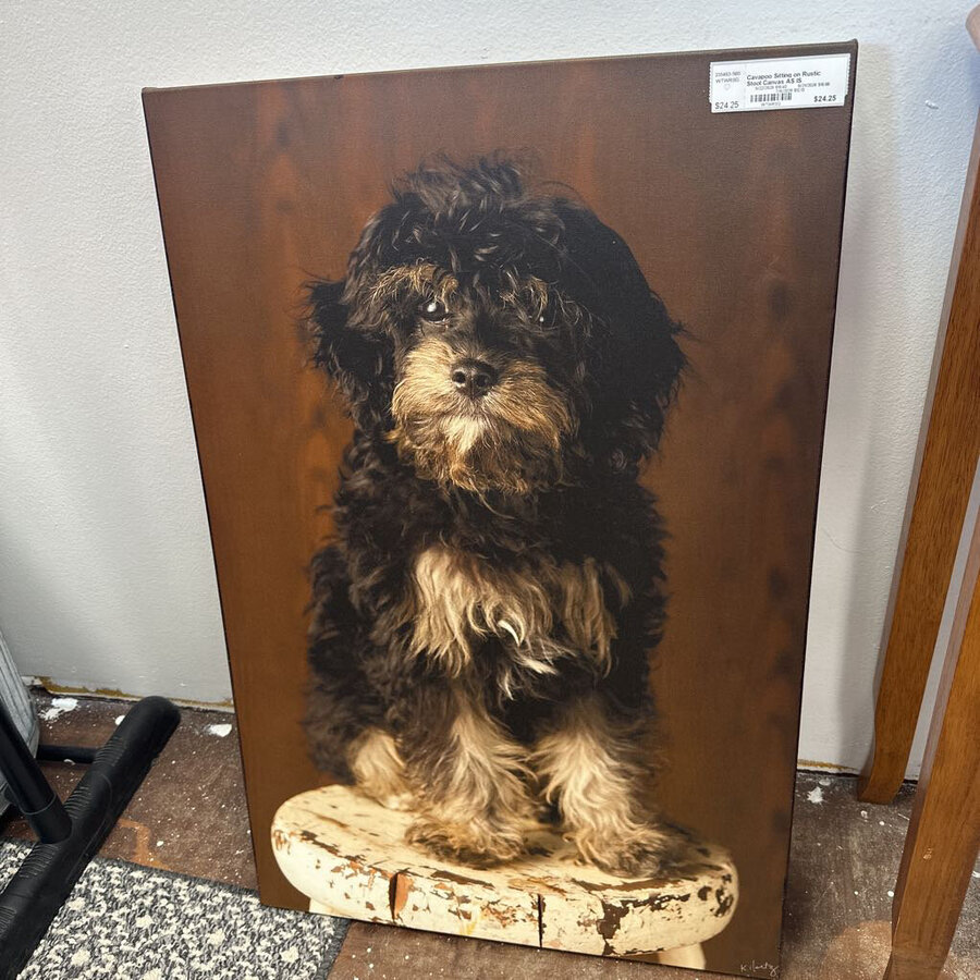 Cavapoo Sitting on Rustic Stool Canvas AS IS - $24.25