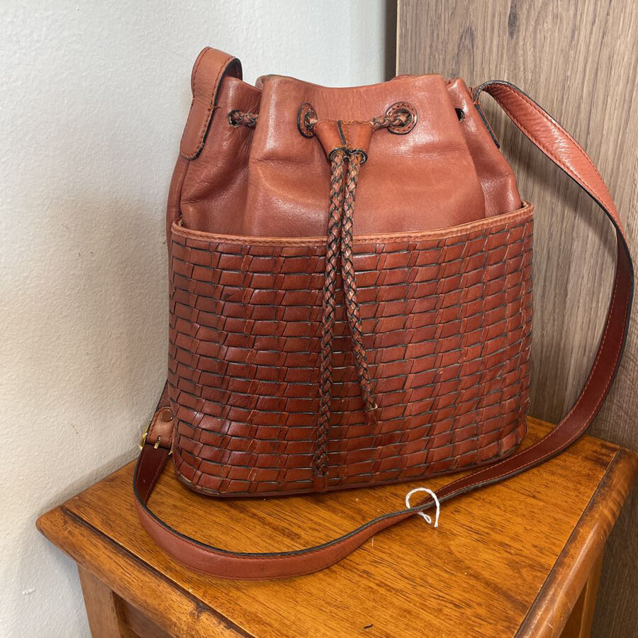 CEM Brown Leather Woven Bucket Bag - $44.25