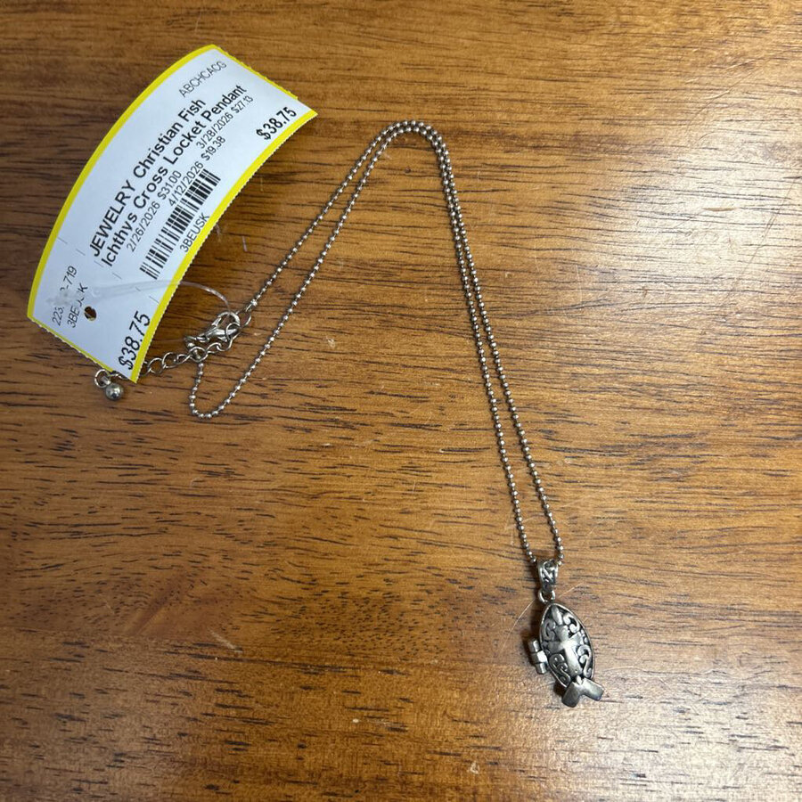 Christian Fish Ichthys Cross Locket Pendant Necklace - $38.75
