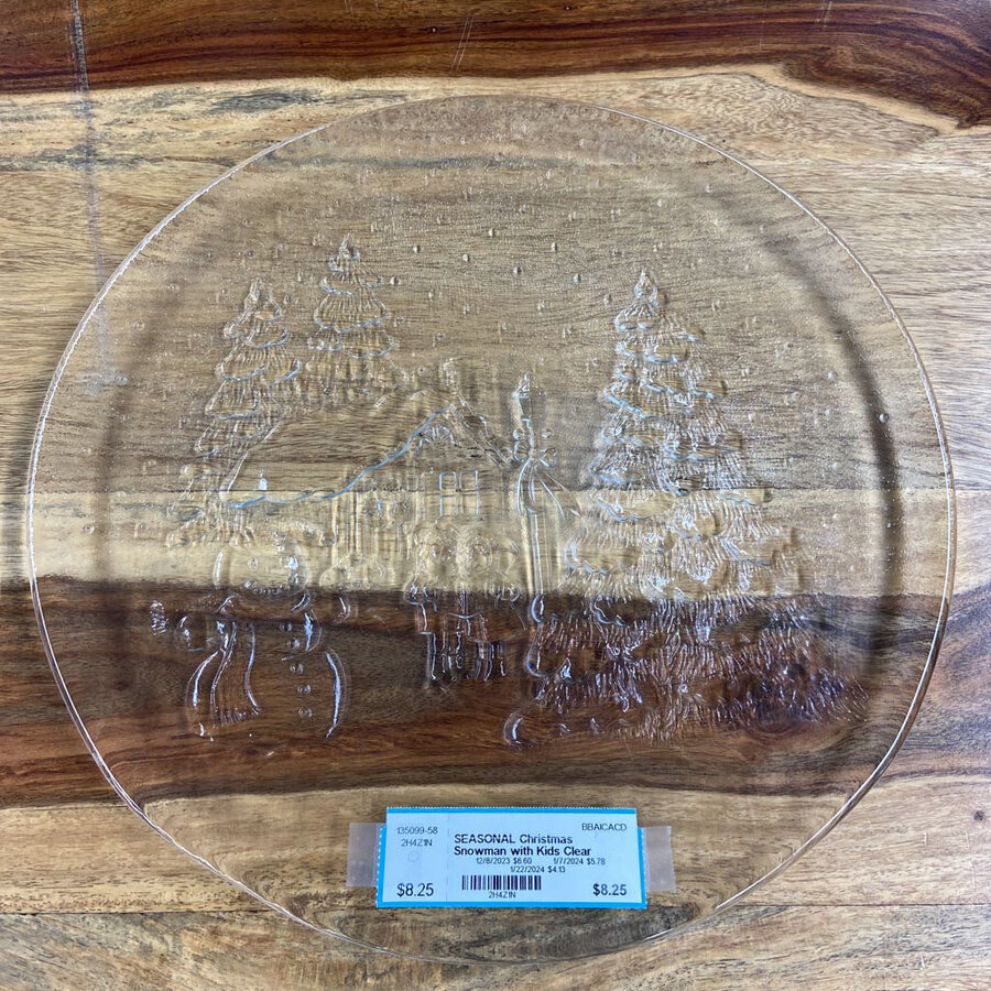 Christmas Snowman with Kids Clear Platter