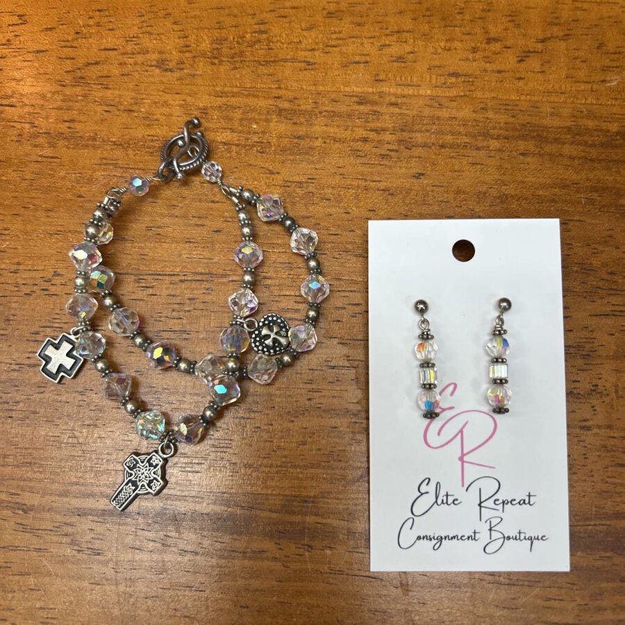 Clear Crystal with 925 SS Bead Bracelet and Earrings - $42.25