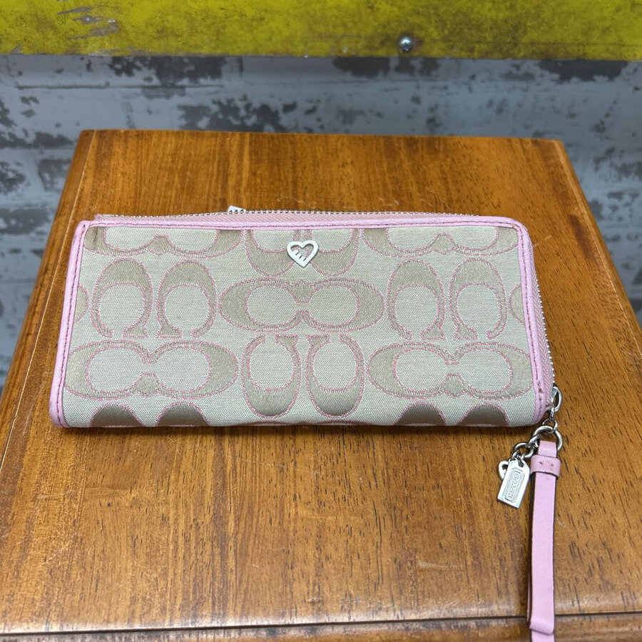 Coach Pink/Brown Zip Around Wallet - $28.25