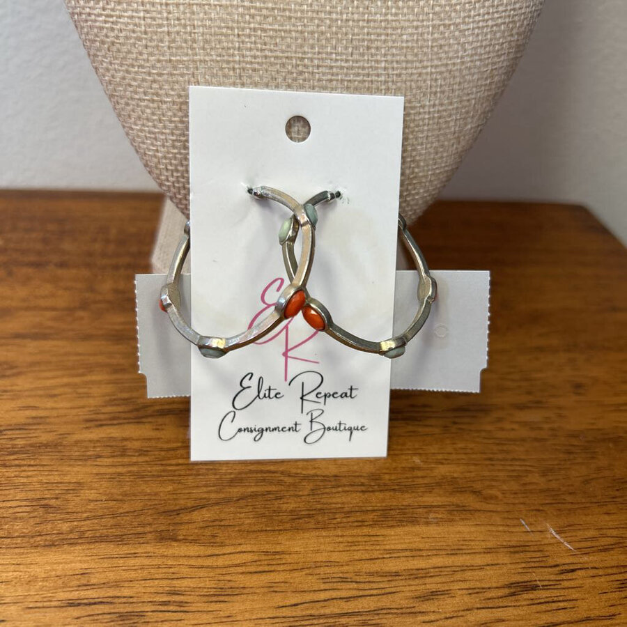 Coral with Green Silver Earrings - $14.75