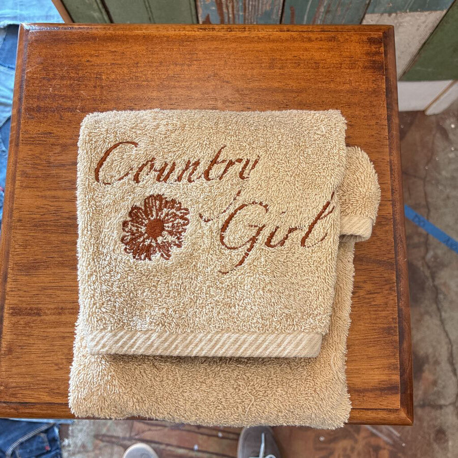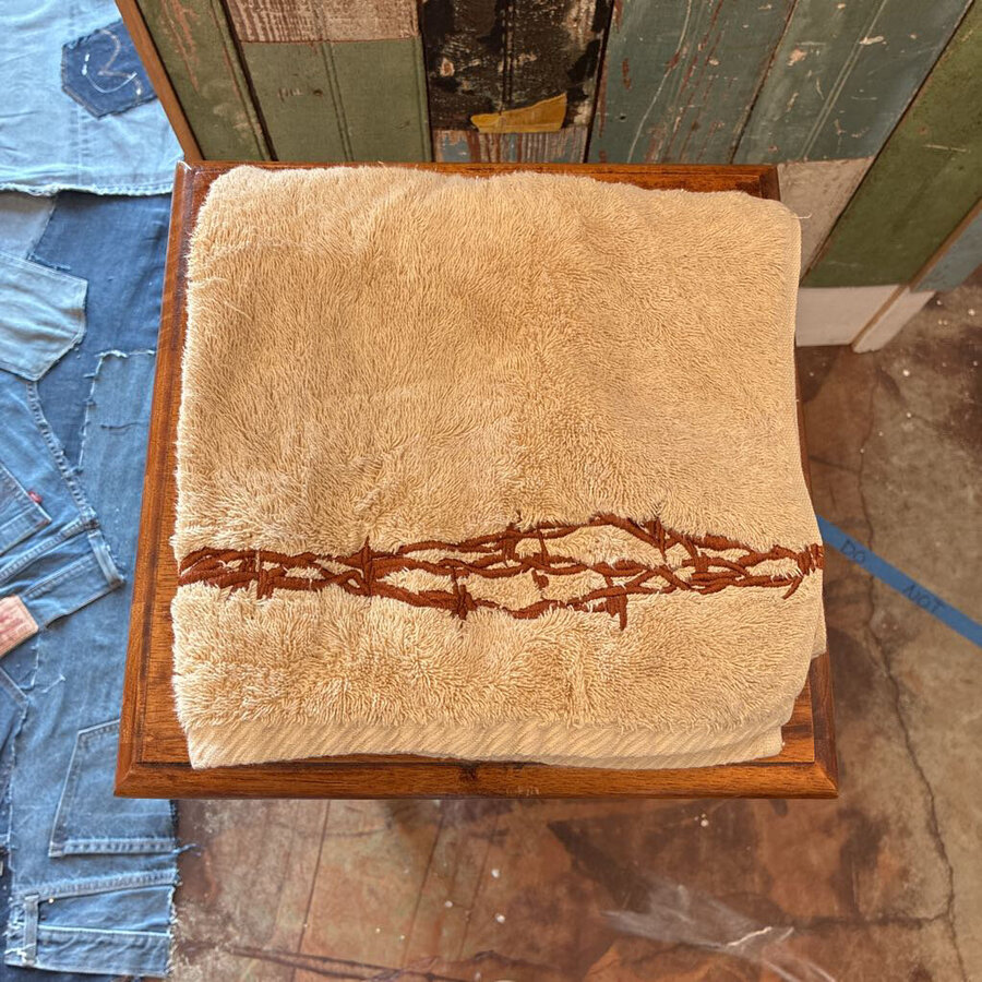 Cowgirl Towels Set of 5 Tan with Embroidered Barbed Wire - $18.25