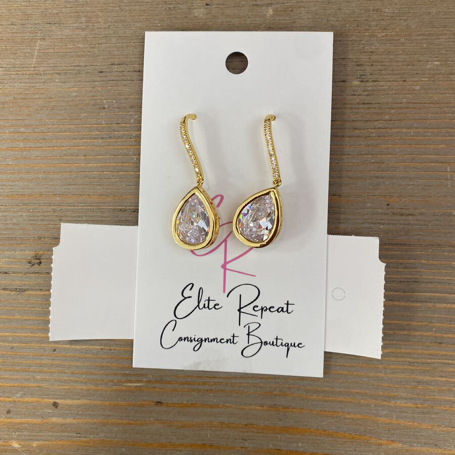 CZ Stone Teardrop Earrings Gold/Silver NEW - $16.75