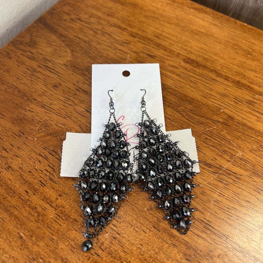 Dark Gray with Chain Bead Earrings - $15.25