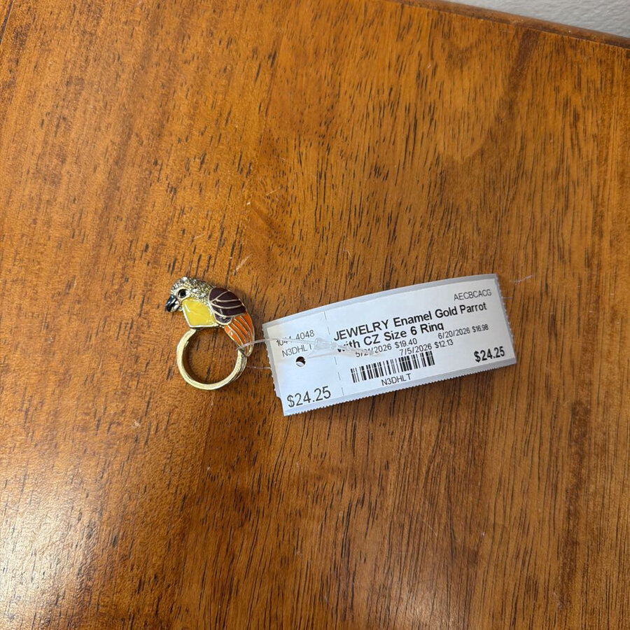 Enamel Gold Parrot with CZ Size 6 Ring - $24.25
