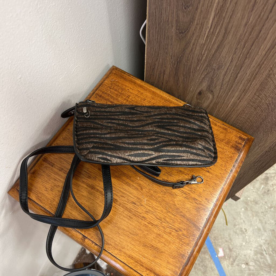Faux Fur Brown Small Wristlet with Crossbody Strap - $18.25