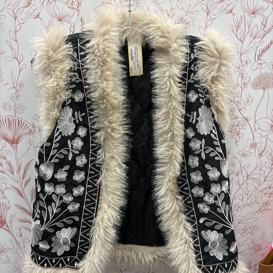 Faux Fur with Black Embroidered Vest - $18.75