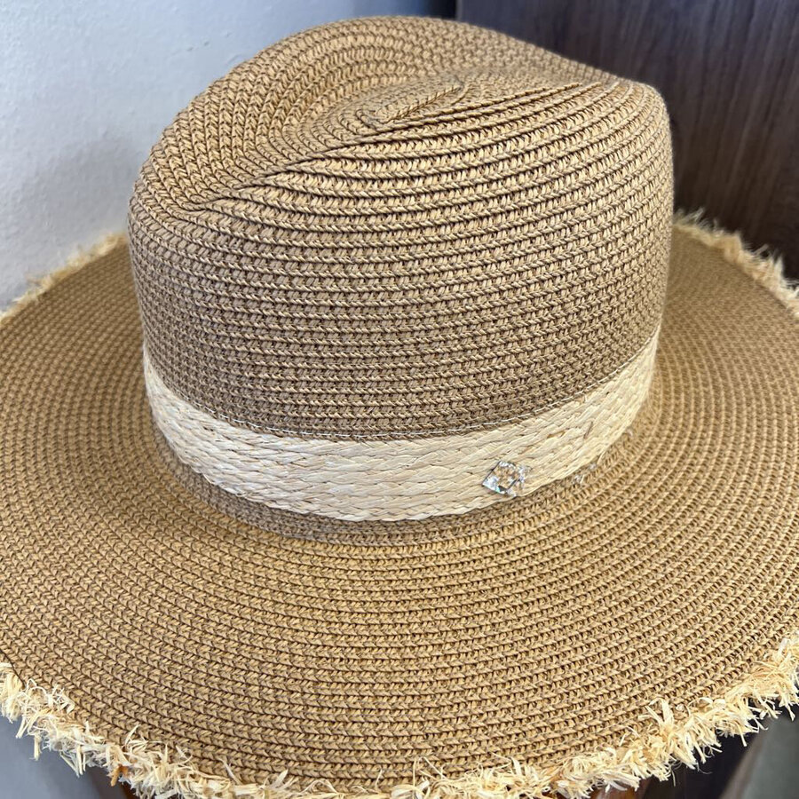 Glitzy Bella Raw Edge Straw Hat Adjustable - $30.25