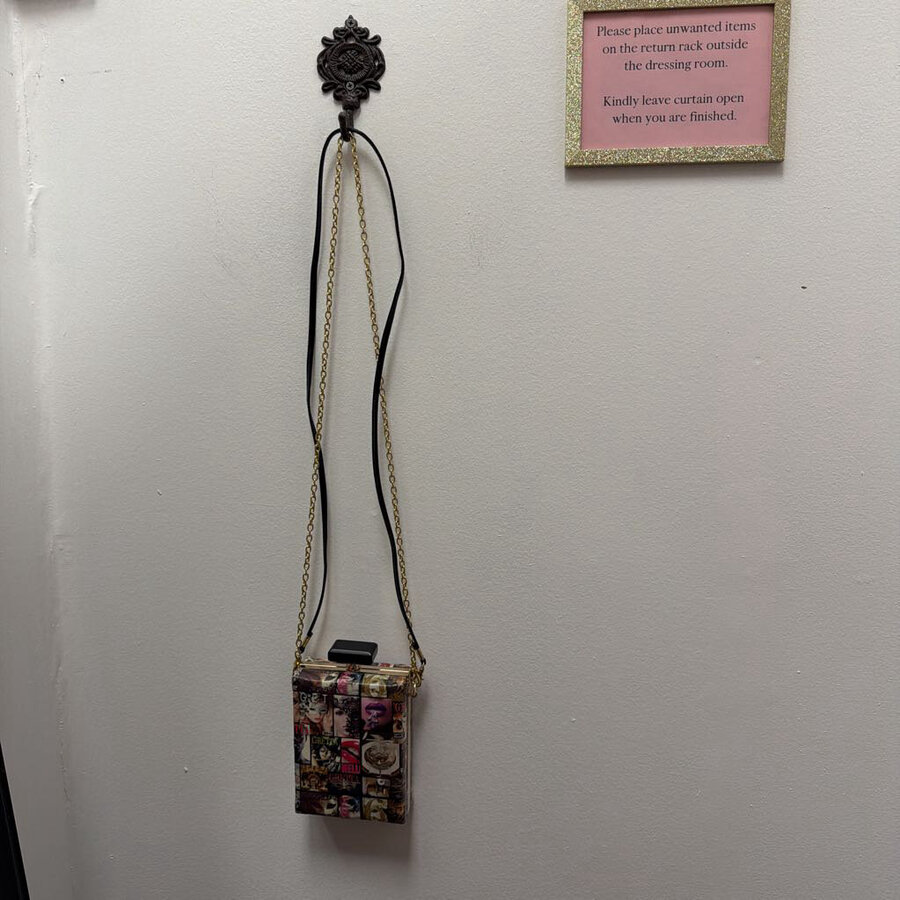 Glossy Magazine Cover Collage Bag with 2 Straps - $32.75