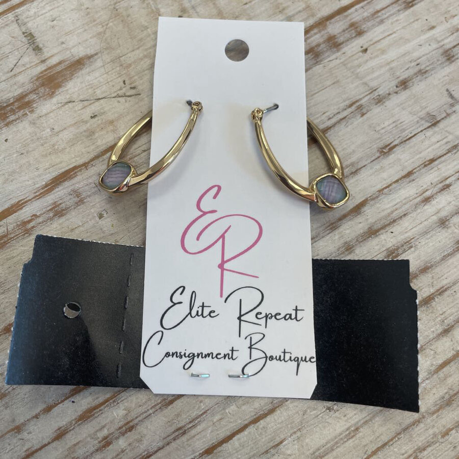 Gold Earrings with Multi Color Stone - $12.75