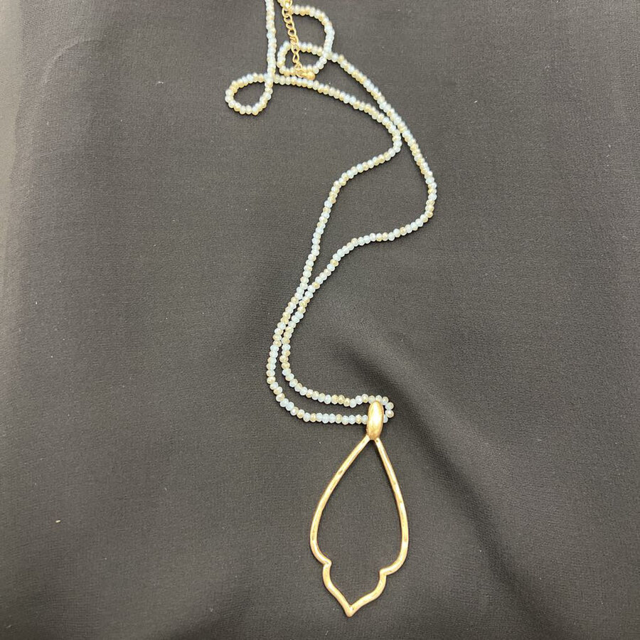 Gray beaded Necklace with Gold Pendant - $15.25