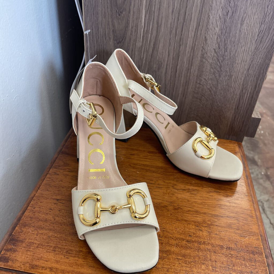 Gucci 39 8.5-9M Baby Horesebit Sandals Block Heel Cream - $465.25