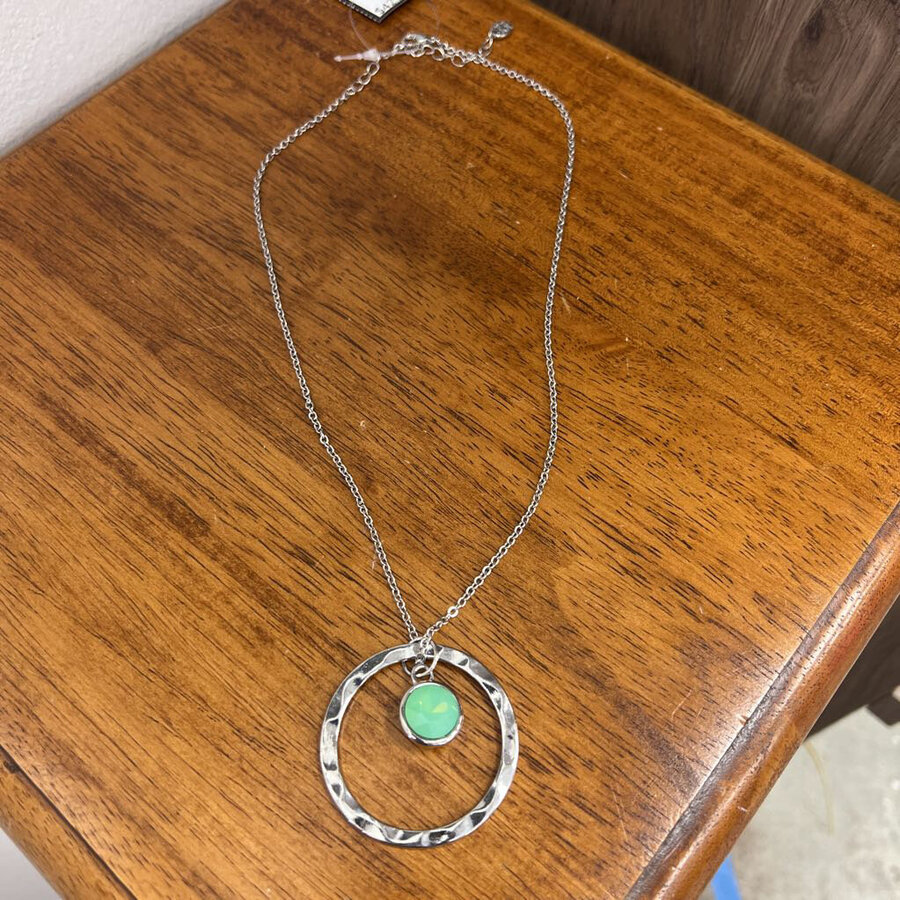 Halo Around the Ocean Aquamarine Silver Circle Necklace - $42.25