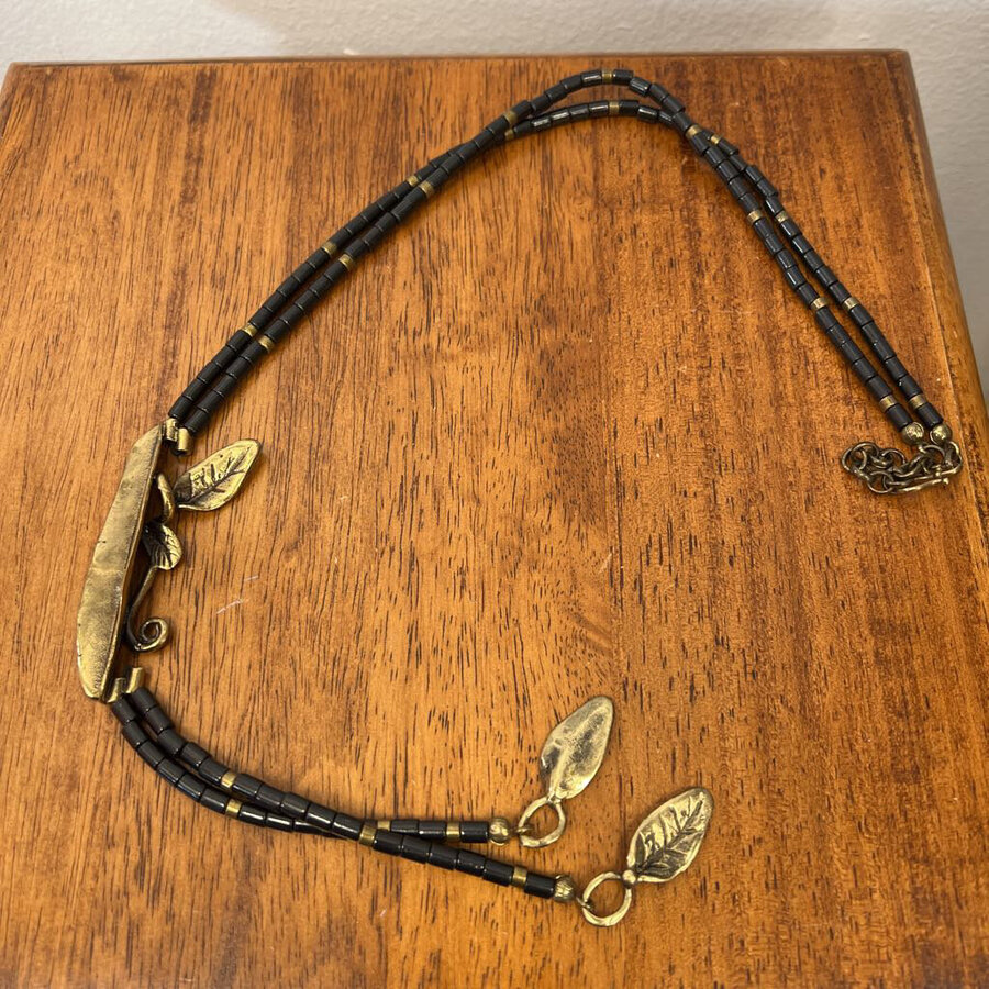 Handmade Antique Bronze and Oxidized Black Leaf Necklace - $38.75