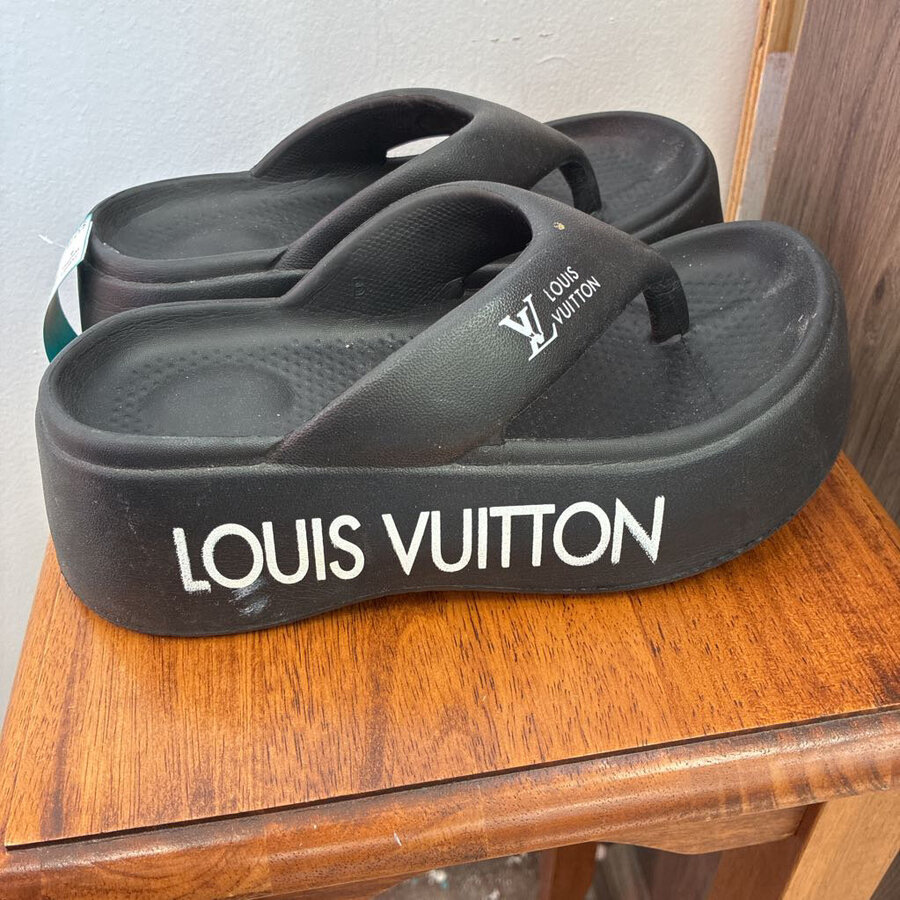 Inspired LV 7M Black Platform Thong Sandals - $32.75