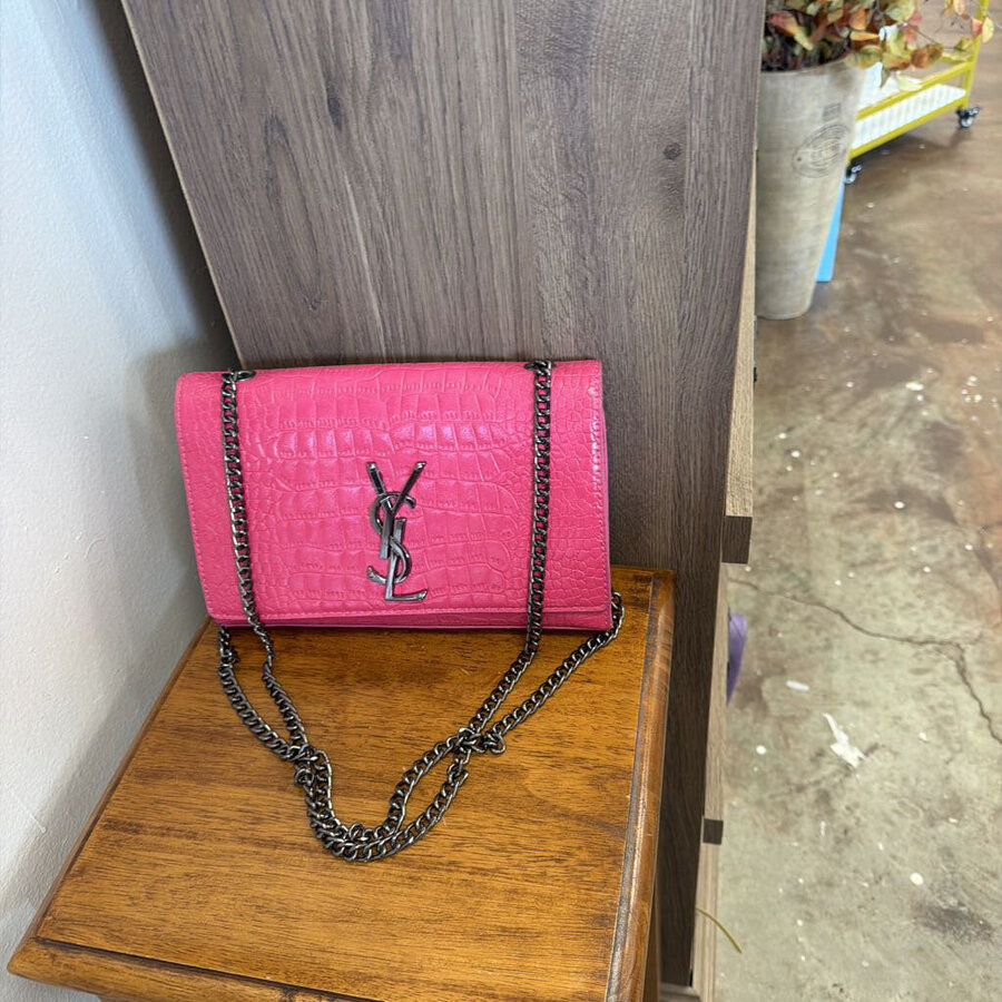 Inspired YSL Fuchsia Croc Embossed w/Gunmetal - $95.00