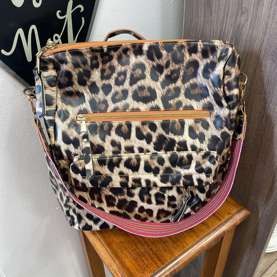 Leopard Print Backpack with Print Strap Multi Colored - $14.25