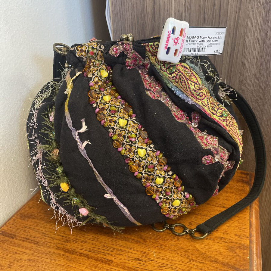 Mary Frances Boho Bag Black with Gem Stone and Embroidery - $42.75