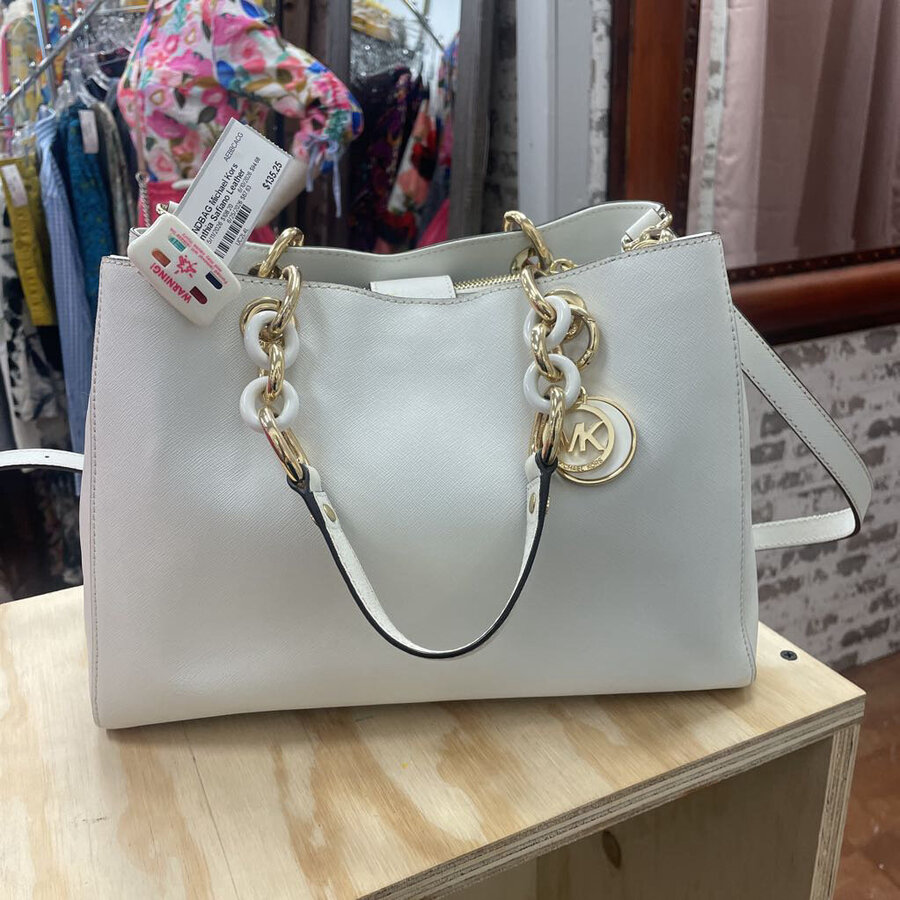 Michael Kors Cynthia Safiano Leather Satchel White - $135.25