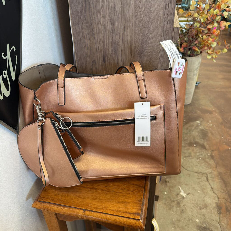 Mondani Rose Gold Tote with Makeup Bag - $48.75