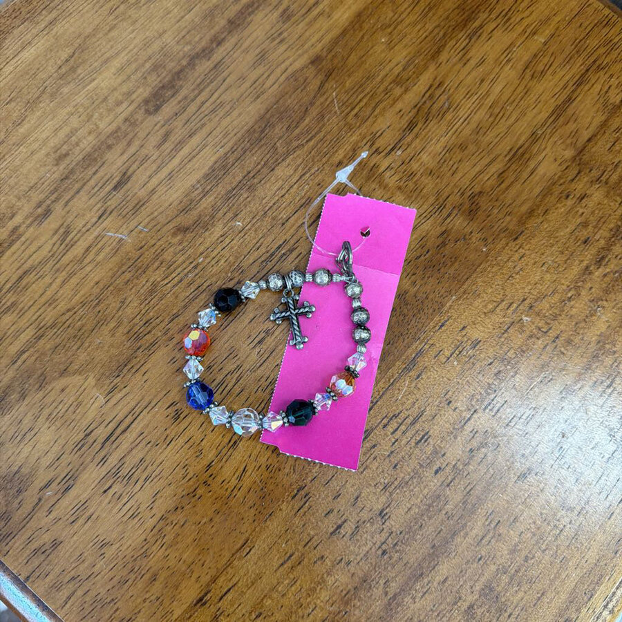 Multi Color Bead Bracelet with Silver Cross - $15.25