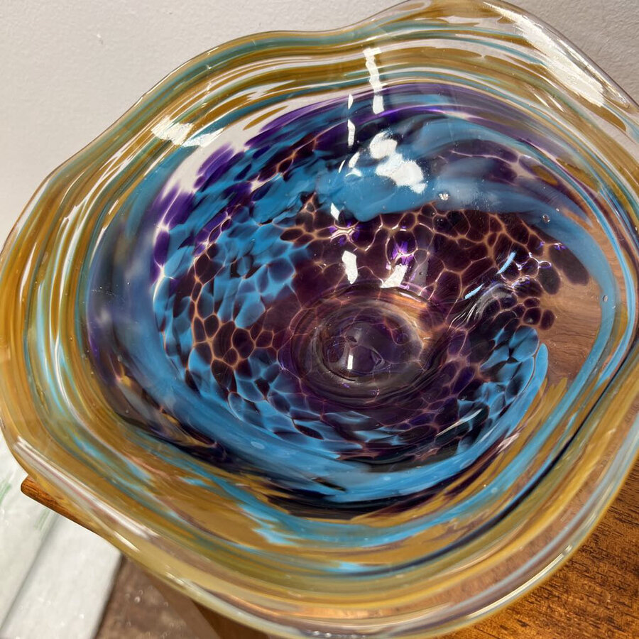 Murano Glass Hand Blown Bowl Purple/Turq/Tan - $42.25