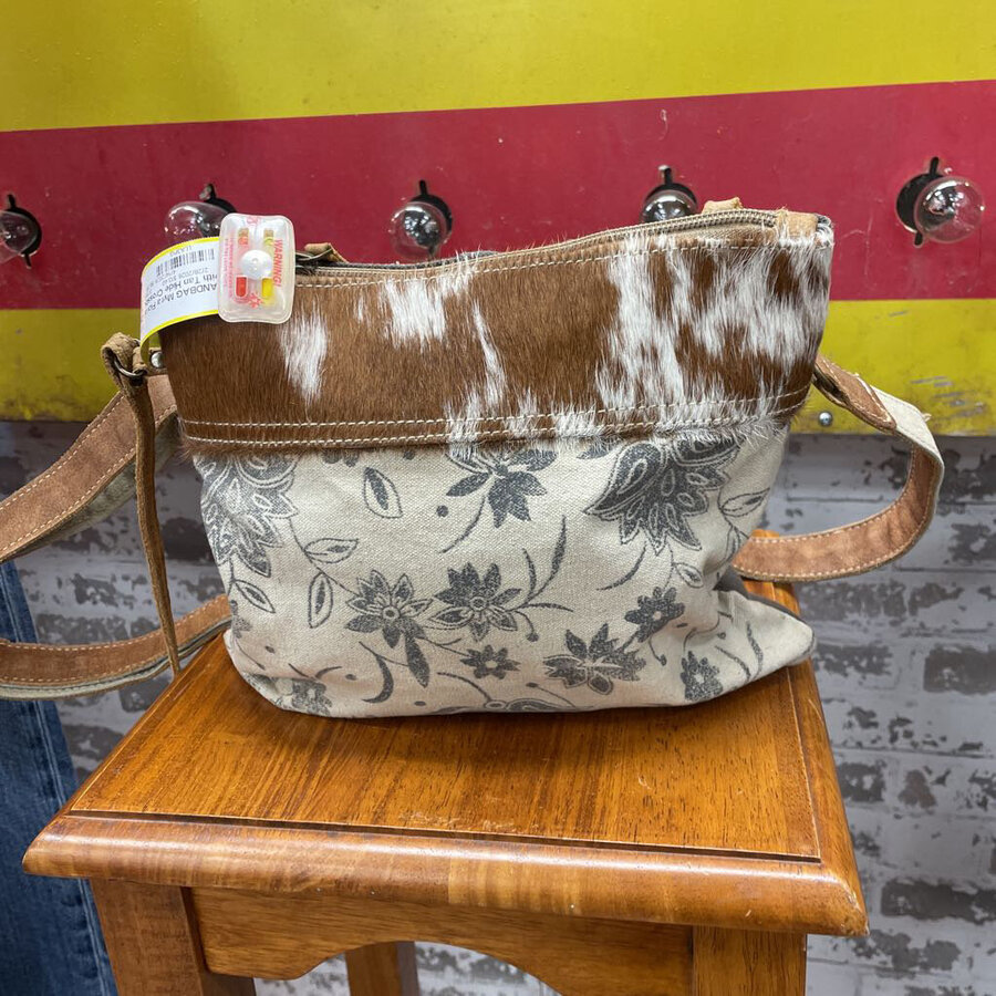 Myra Floral Canvas with Tan Hide Crossbody - $16.75