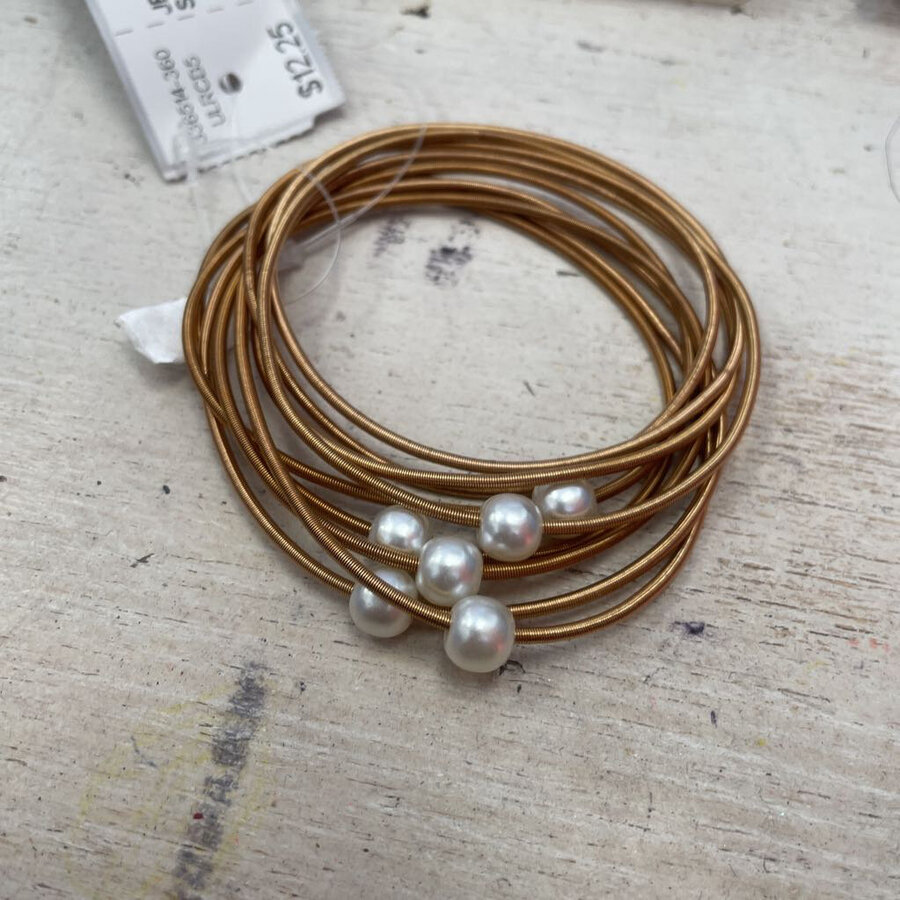 Pearl and Bronze Stretch Bracelet set of 9 - $12.25